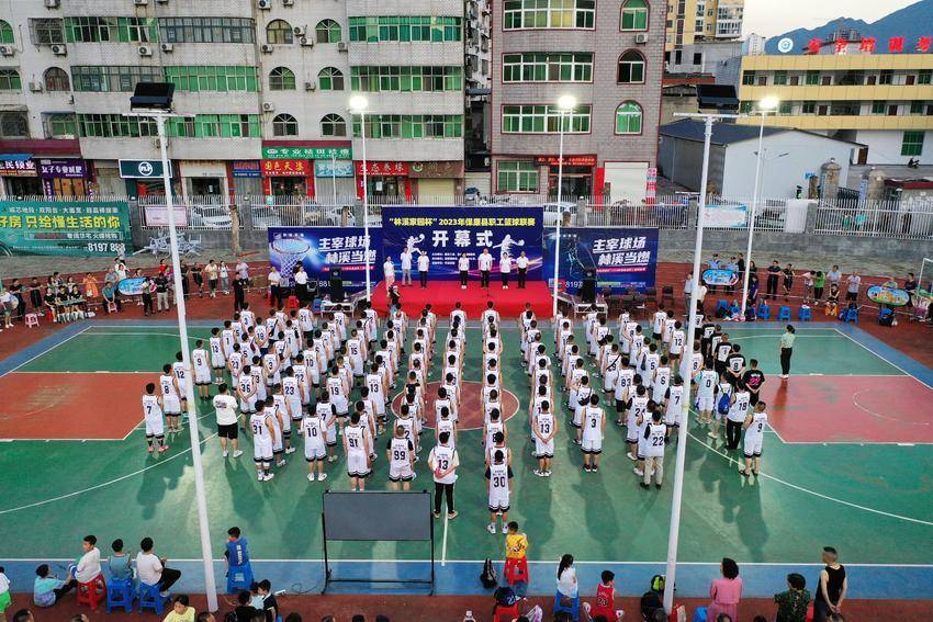 当晚7点30分,雄壮激昂的国歌在篮球场奏响,拉开“林溪家园杯”2023年保康县职工篮球联赛序幕。胡志芳宣布篮球联赛开幕。