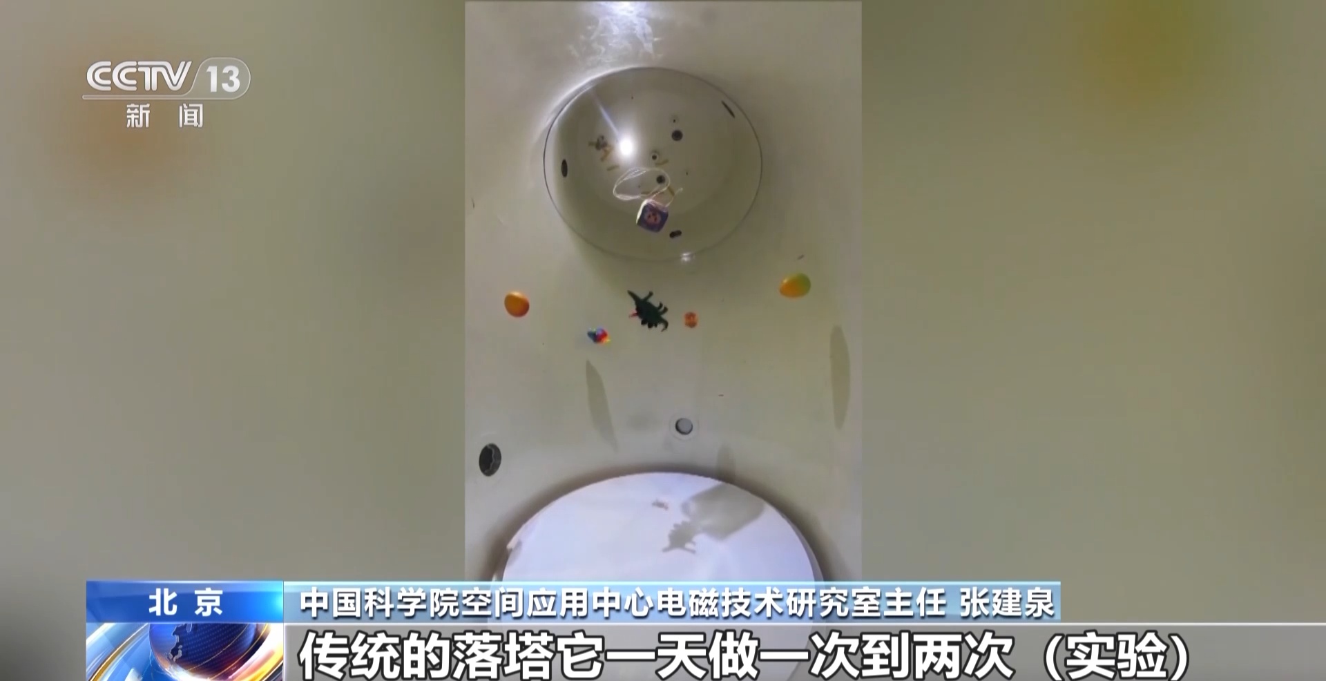 中国科学院空间应用中心电磁技术研究室主任 张建泉:传统的落塔一天做一次到两次,我们这个可以一天做几十次。另外,我们运行成本很低,像失重飞机时间会长一点,能够到20秒左右,但是失重飞机一次的成本,普通的一个载荷进去可能也得花二三十万元。