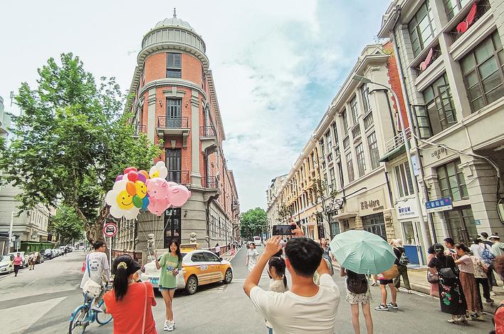 为了迎接暑期出游高峰,汉口历史风貌区被擦拭得更加整洁靓丽。近段时间来,焕新升级的汉口历史风貌区人来人往,许多市民游客特别是放暑假的孩子们前来“打卡”,参观历史建筑群、漫步百年老街,感受武汉独特的城市底蕴。楚天都市报极目新闻记者李辉摄