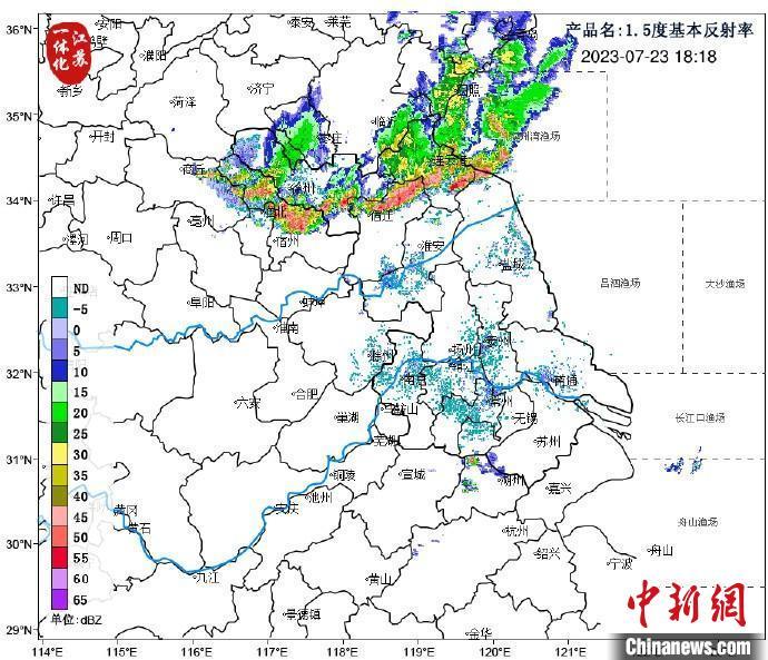 江苏气象部门发布的气象云图,显示苏北地区已经出现降水回波。江苏气象制图