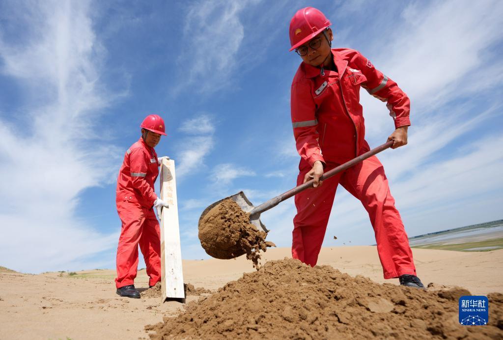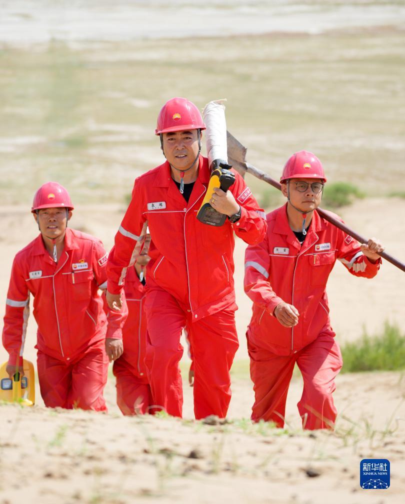在内蒙古自治区鄂尔多斯市乌审旗毛乌素沙地深处,一群身着红色工服的天然气管线巡线员,每日徒步穿行在沙漠、戈壁、草原间。