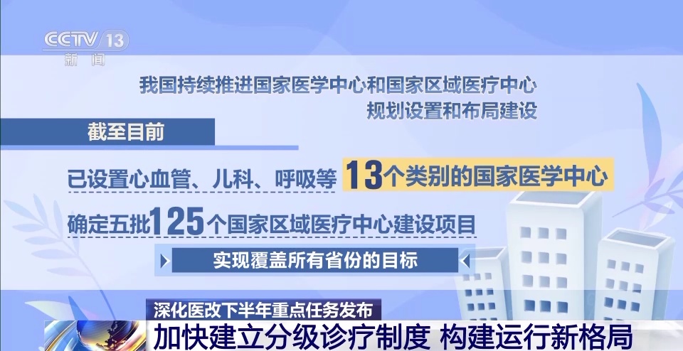 近年来,我国持续推进国家医学中心和国家区域医疗中心规划设置和布局建设,截至目前,已设置心血管、儿科、呼吸等13个类别的国家医学中心;确定五批125个国家区域医疗中心建设项目,实现覆盖所有省份的目标。