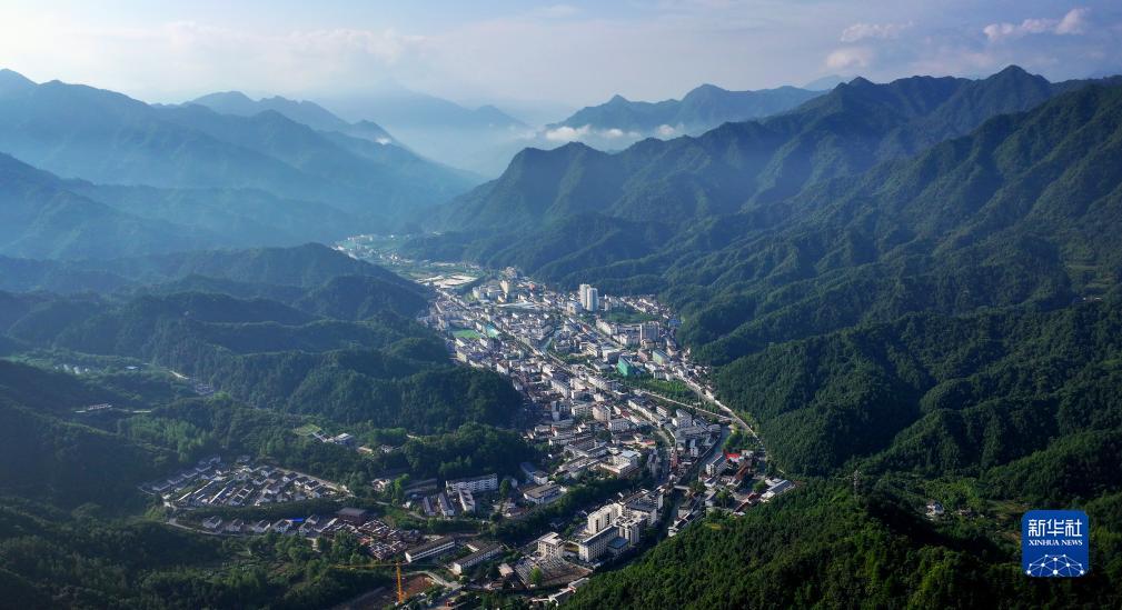 位于秦岭深处的陕西省汉中市留坝县城(7月25日摄,无人机照片)。