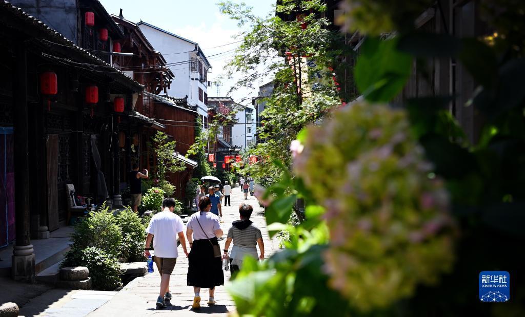 游客在陕西省汉中市留坝县老街上游玩(7月25日摄)。