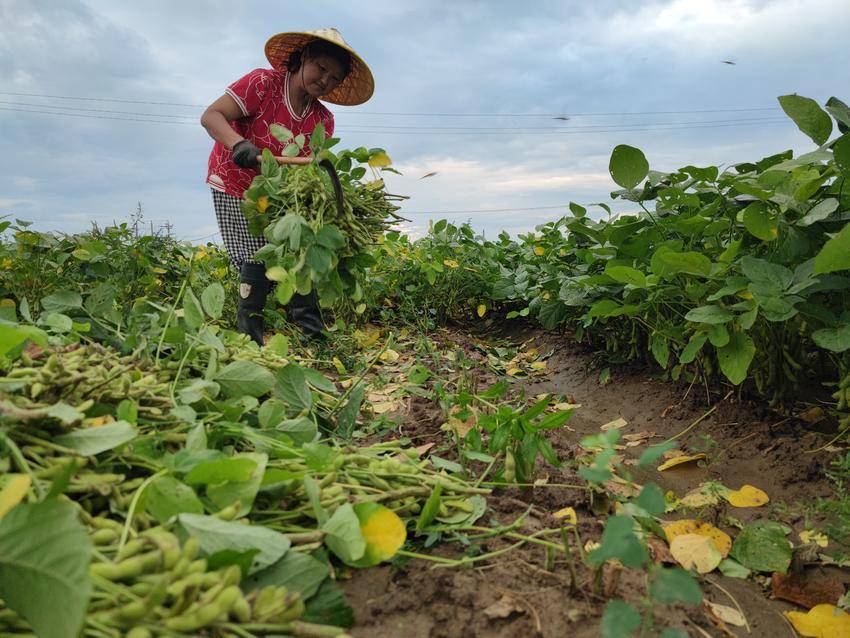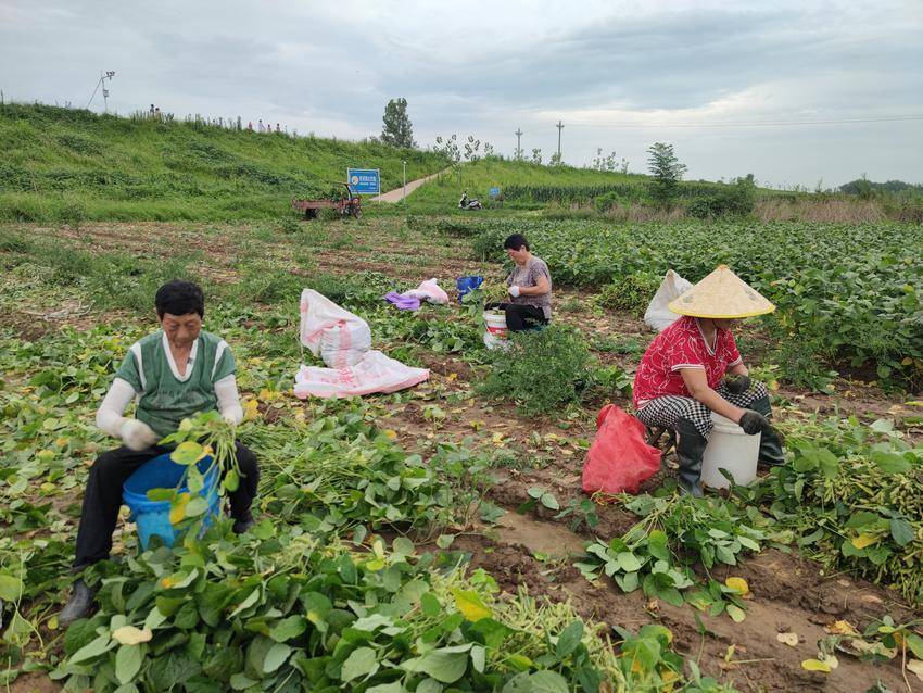 云梦县鑫盛蔬菜种植专业合作社组织20多名劳力采收毛豆。
