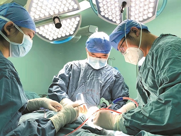 刘小玉与同事联手为患者实施手术 图片由医院提供