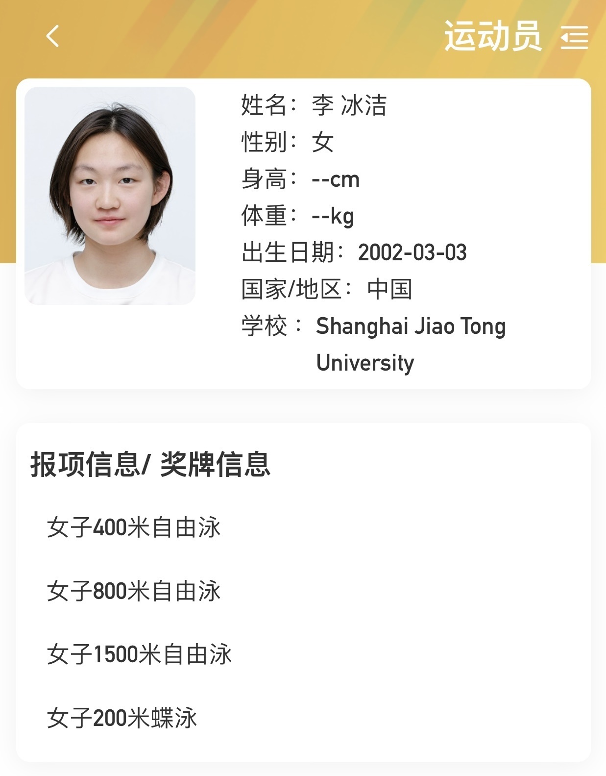 在成都大运会公示的运动员名单中,张雨霏、覃海洋、李冰洁在列。在世锦赛斩获三金的覃海洋继续“蛙泳套餐”,张雨霏出战中短距离自由泳和蝶泳,李冰洁将参加四个项目的争夺。加油!