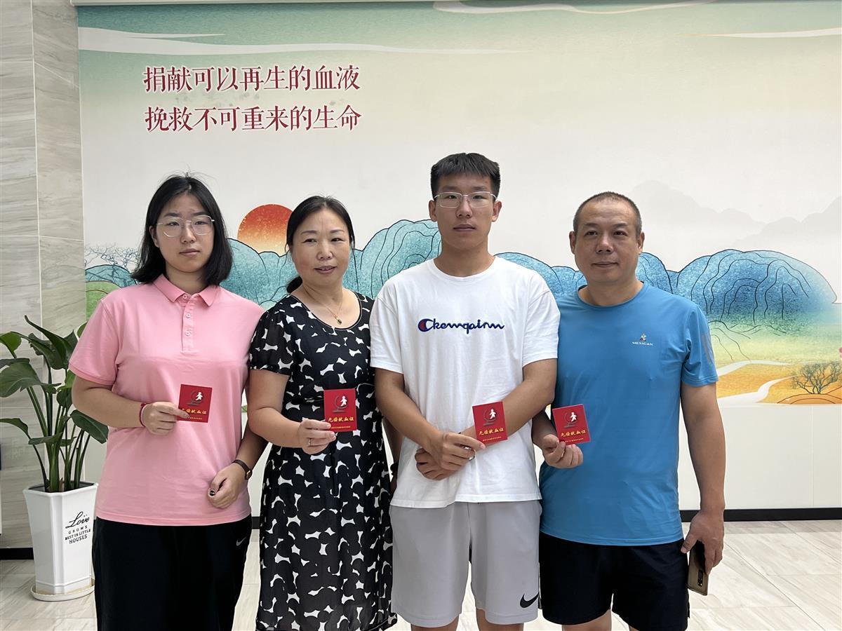 7月26日上午10点多,18岁的龙凤胎兄妹贾子譞和贾子璇在父母的带领下,步入湖北襄阳市中心血站机采室,完成了一家四口齐献血的心愿。在极目新闻记者的建议下,一家四口拍下了献血“全家福”,父亲贾旭辉开心地说,“这真是个值得纪念的日子!”