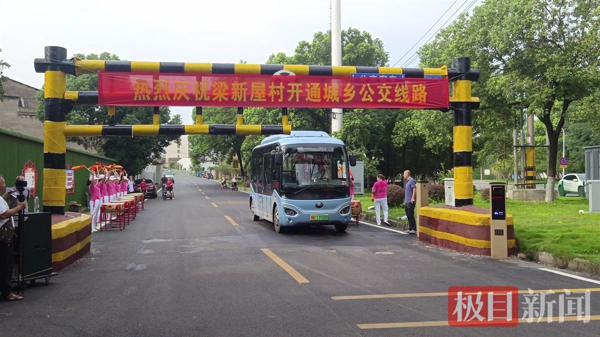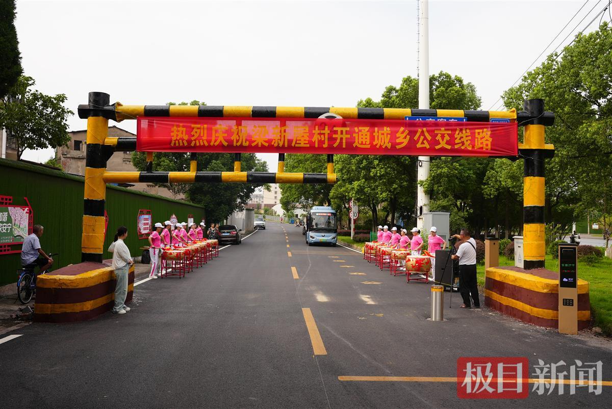 7月25日,湖北省鄂州市19路公交车开过五里墎高架桥,村民在两旁擂鼓迎接。“现在公交车开到家门口,大家再也不用步行一公里多上公交了。”鄂城区梁新屋村村民邵义云说。