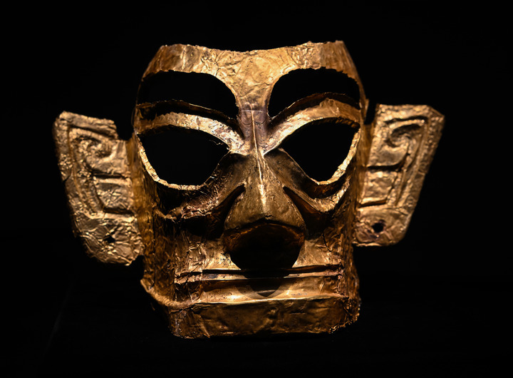 7月17日在三星堆博物馆新馆拍摄的金面具。新华社记者 王曦 摄