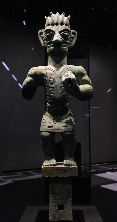 7月17日在三星堆博物馆新馆拍摄的青铜着裙立人像。新华社记者 王曦 摄