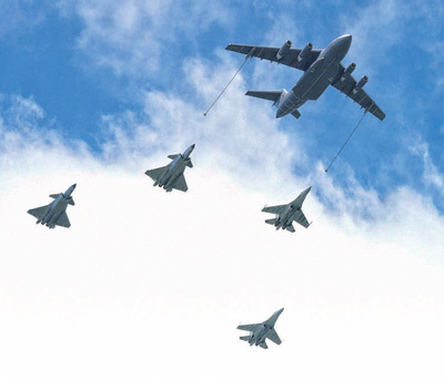 广大空军官兵按照加快建设一支空天一体、攻防兼备的强大人民空军的战略要求,扎实推进体系能力建设,积极投身练兵备战,战机航迹不断延伸,警巡东海、战巡南海、砺兵台海、前出西太、绕岛巡航、跨洋机动,体系能力越练越强。迈步强军新征程,人民空军将持续向更远、更高、更快、更强方向发展,为维护国家主权、安全、发展利益,提供强大的空天力量支撑。