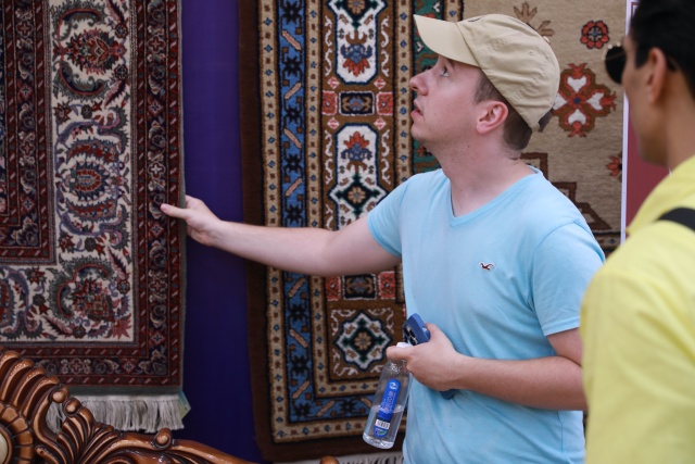 鹿可欣赏地毯厂展室里的一块标价35万元人民币的真丝挂毯 摄影 曲艺