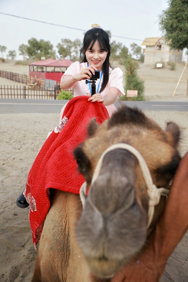 国际在线报道(记者 黎萌):7月27日,南疆的和田风和日丽。参加2023“打卡中国·读懂中国式现代化——你好,新疆!”网络国际传播活动的外国网红全天在和田参观。他们欣赏真丝地毯,了解民族服装的生产加工过程,打磨、雕琢和田玉,体验滑沙、骑骆驼和沙漠越野卡丁车。外国网红们在电商产业园还看到了当地核桃、葡萄干等优质农产品的热卖。