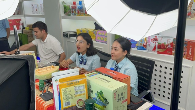 在和田地区电商产业园,外国网红得知,这里半天多的销售额就达600多万元人民币 摄影 赵博