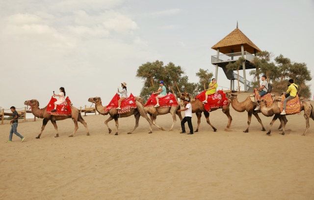 越南网红阮氏清清骑在骆驼背上拍摄 摄影 曲艺