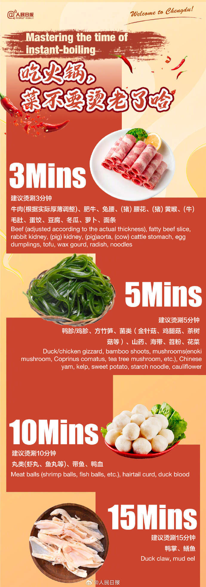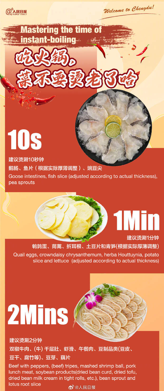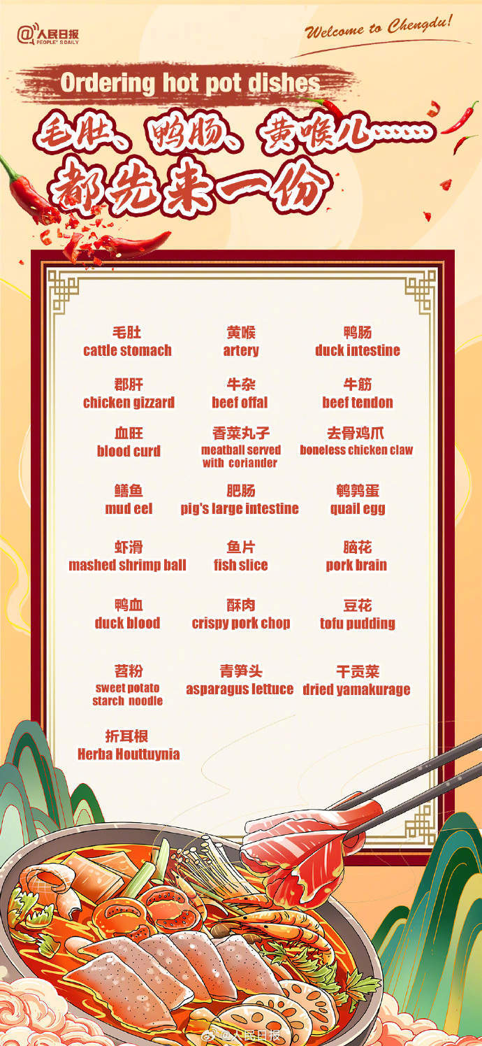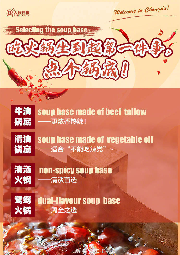 Welcome to Chengdu! 来成都耍,火锅必须整起。牛油锅还是鸳鸯锅?微辣、中辣、特辣,想挑战哪个?到了四川,调蘸碟是不是该整个油碟?毛肚、鸭肠、黄喉儿……已经在流口水了!来自成都的火锅涮烫双语指南↓↓速速收藏!