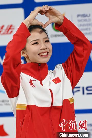 中新网成都7月30日电(贺劭清 张浪 何美锟)30日,在成都大运会武术项目女子太极剑比赛中,中国选手陈小丽以9.746分的佳绩夺得冠军。站上领奖台后,陈小丽向全场观众“比心”。谈及学武之路,她表示,“是‘热爱’一直在推着我往前走”。