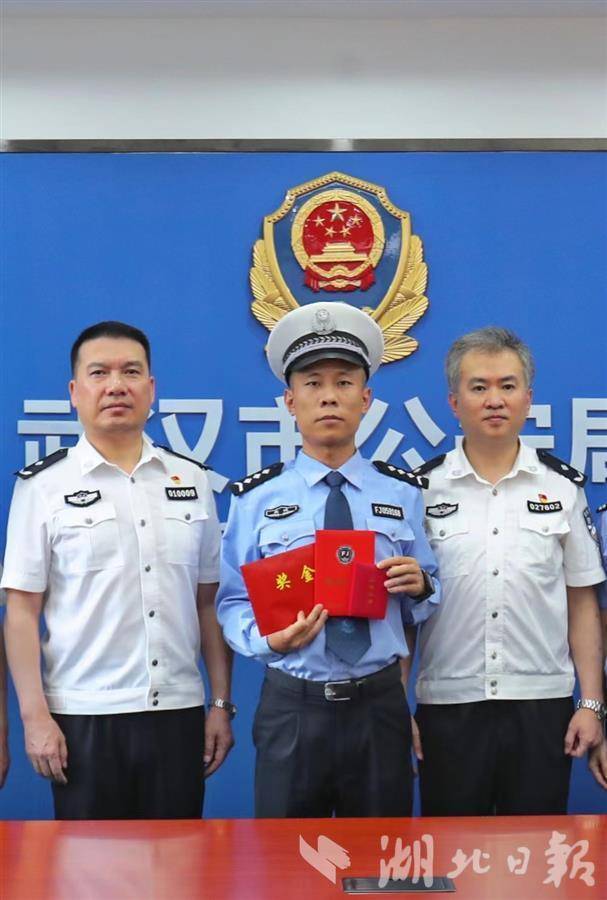湖北日报讯(记者杨然、通讯员武龚萱)近日,武汉市硚口区辅警韩靖从月湖桥上一跃而下,成功营救轻生女子,受到社会各界广泛赞誉。武汉市公安局作出决定,授予辅警韩靖二等荣誉奖章。7月30日上午,武汉市公安局党委委员、政治部主任陈孝海到韩靖所在的硚口区交通大队一中队送奖并慰问,表彰韩靖英勇无畏的精神。