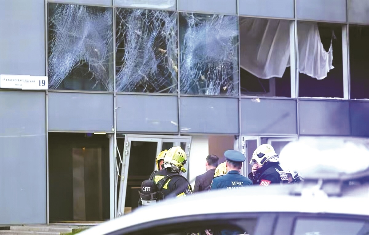 塔斯社援引俄罗斯紧急服务部门的消息称,“IQ-Quarter”综合建筑群一栋50层建筑的第五层和第六层之间发生了“爆炸”,居民听到了巨大的爆炸声,该建筑群共有三栋高层建筑。官员称,发生爆炸的大楼内有办公室和商店,无人机袭击导致一楼到四楼的玻璃被震碎,一名保安受伤。