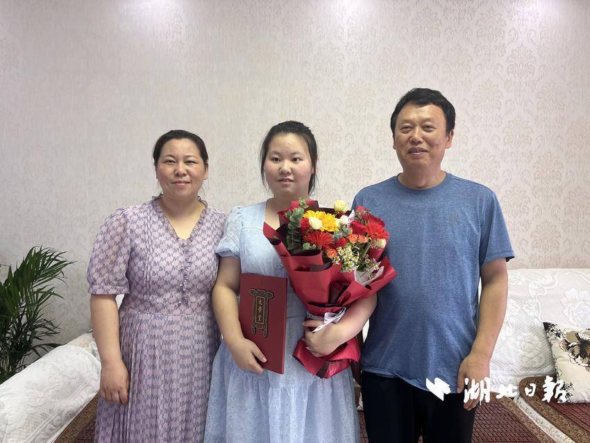 电话通知到学生本人后,周先生便带着崭新的录取通知书来到房县诗经花苑小区刘沐昀家。签收完录取通知书和邮政公司送下的鲜花后,刘沐昀迫不及待地和家人一起拆开了通知书,喜悦之情溢于言表。