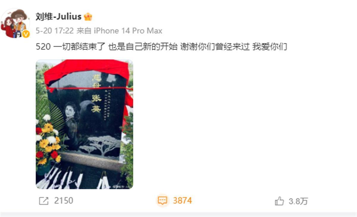 此前,刘维工作室曾发布讣告,2023年3月14日上午9时30分,刘维的母亲张英女士因病医治无效去世,享年63岁。