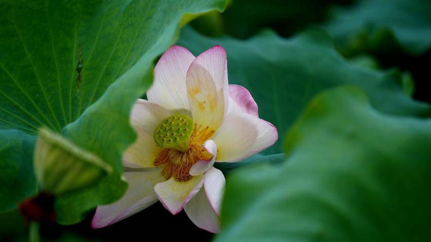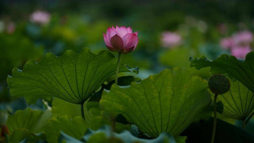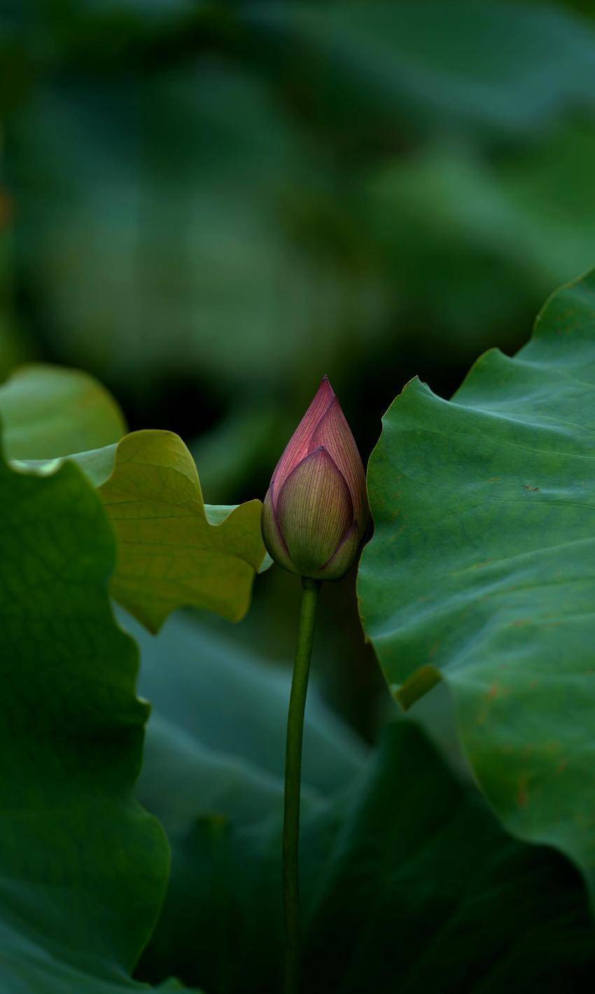 含苞待放的花苞,从荷叶间展露出妙曼身姿。