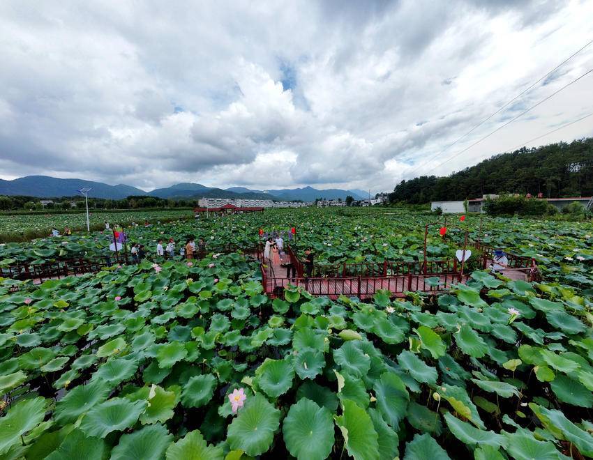 游客们纷至沓来、避暑纳凉,观赏满池的荷花盛宴。