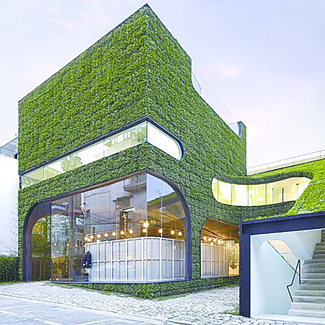 在韩国首尔江南区繁忙而宽阔的江南大道边上,有一条4米宽的小巷。在巷子里隐藏着一座长满了绿色植物的建筑物,低调地被周边密集的混凝土建筑包围着。它就是由韩国建筑师赵明介(音)设计的安·德米勒梅斯特商店,也被称为首尔的“绿色堡垒”(如图)。
