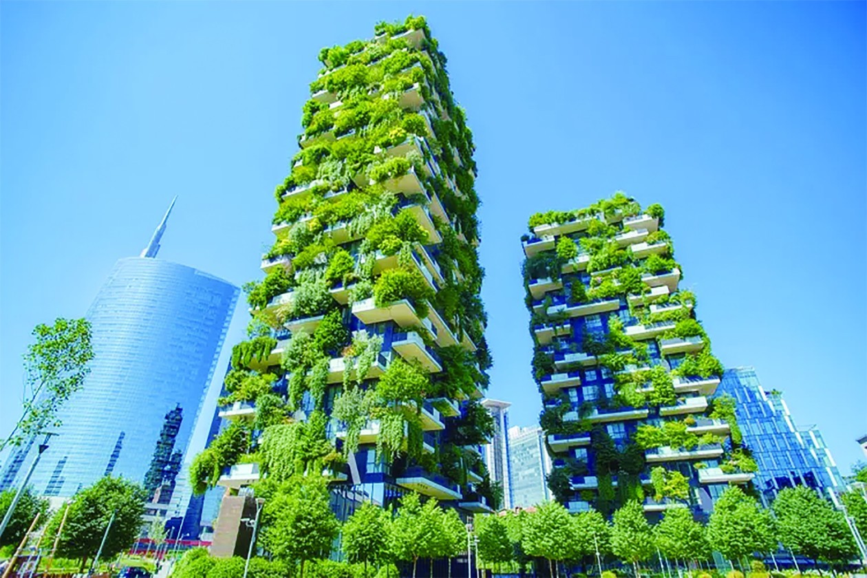 世界首个“垂直森林”项目由此而诞生(如图)。自2014年该建筑落成以来,“垂直森林”以其独特的建筑风格吸引着来自世界各地的游客和开发商观摩参观。“垂直森林”坐落在米兰的一个主要商业区内,由约112米和80米高的两座高层建筑组成,种类纷繁、高低错落的树木和花草点缀着每一个楼层,每家每户的悬挑式阳台上都是满满的绿色,远远望去,“垂直森林”犹如两座高耸的“树塔”一般,现已成为米兰的地标建筑之一。