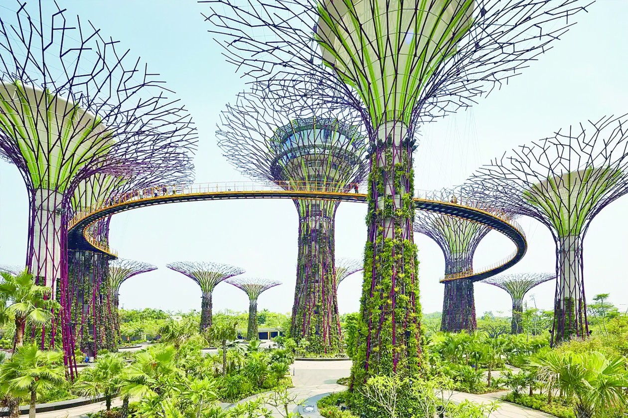 滨海湾花园是垂直绿化理念的最佳体现之一。这里是当今全球最时尚的立体公园,垂直绿化集中了立体绿化最新的高科技手段,尤其是令人印象深刻的“超级树”,是滨海湾花园的地标(如图)。
