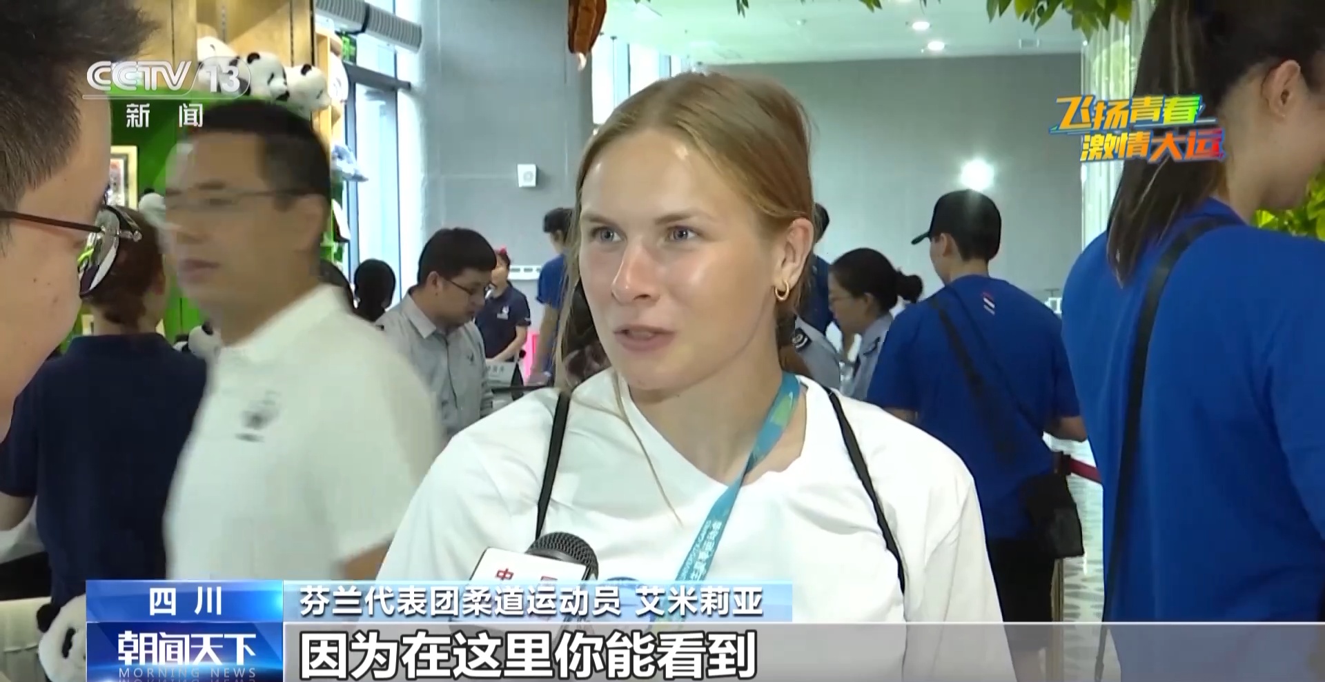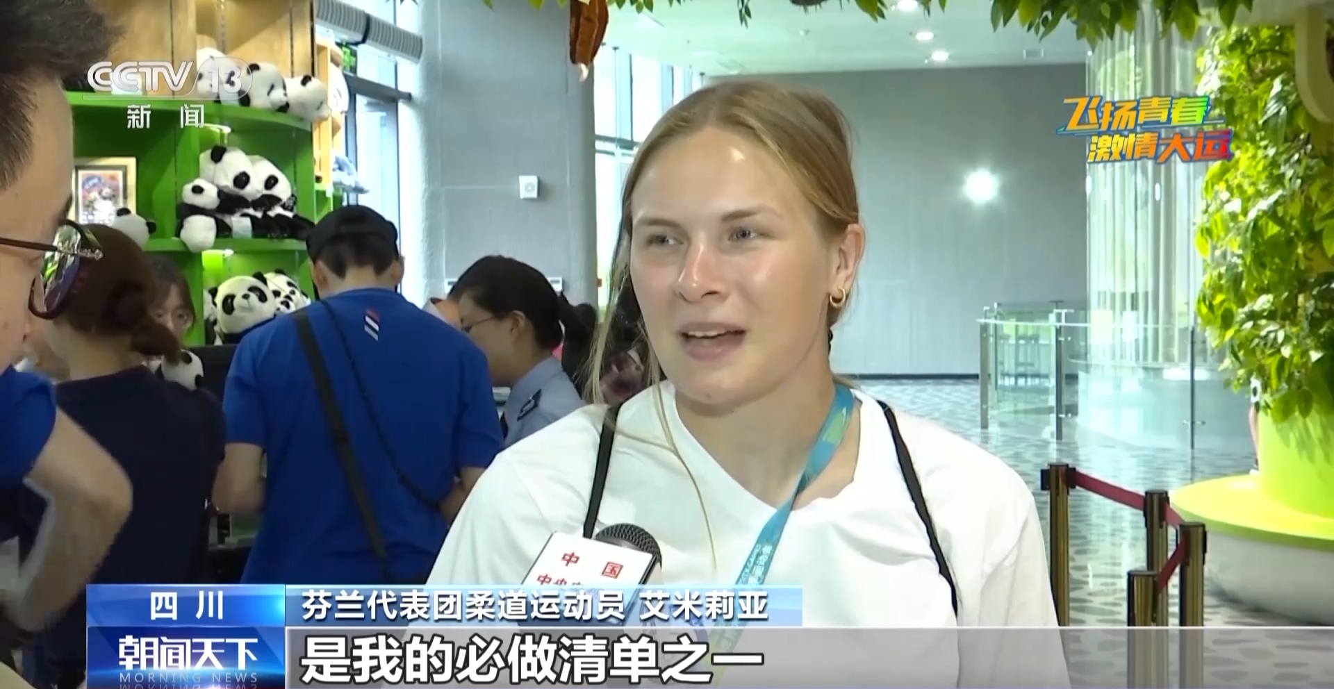 芬兰代表团柔道运动员 艾米莉亚:在芬兰我们也有大熊猫,都来自中国,所以来中国看大熊猫一直是我的梦想,是我成都之行的必做清单之一。