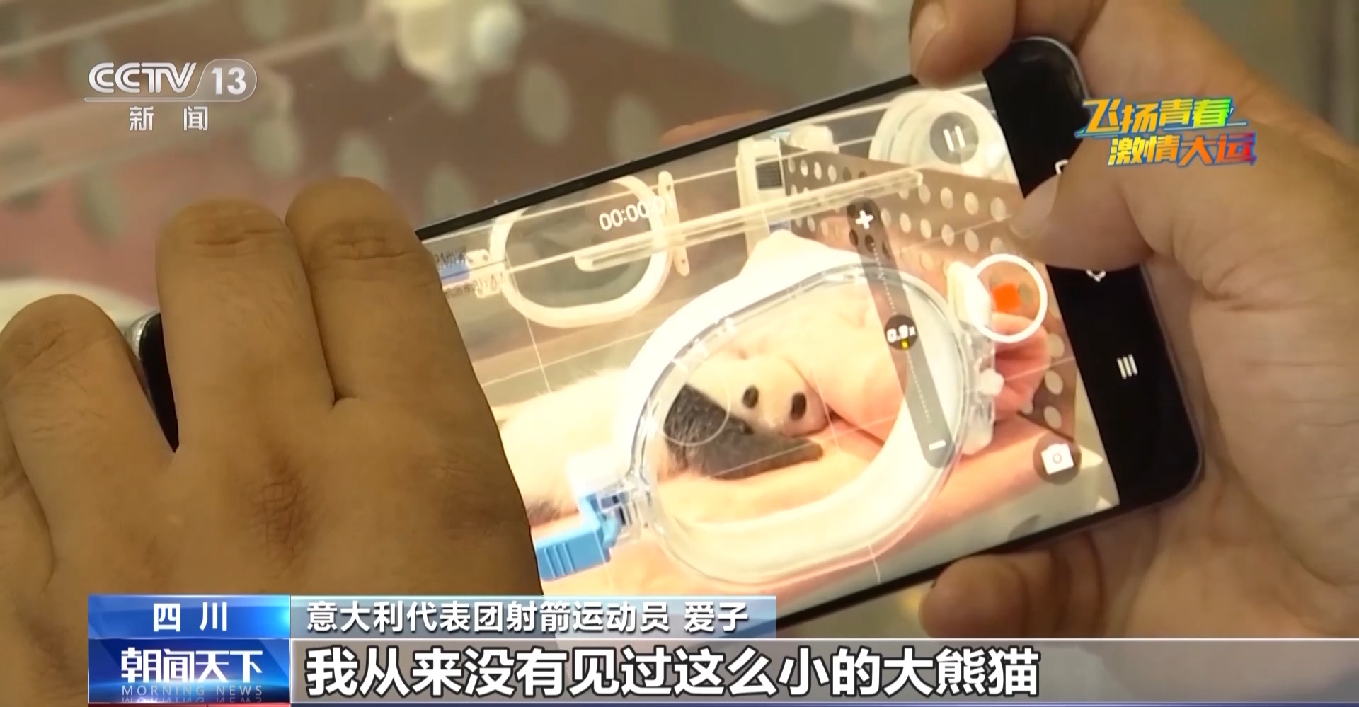 意大利代表团射箭运动员 爱子:我从来没有见过这么小的大熊猫,它成年后会长得很高大,但现在这样实在是太可爱了,是我见过的最可爱的动物了!