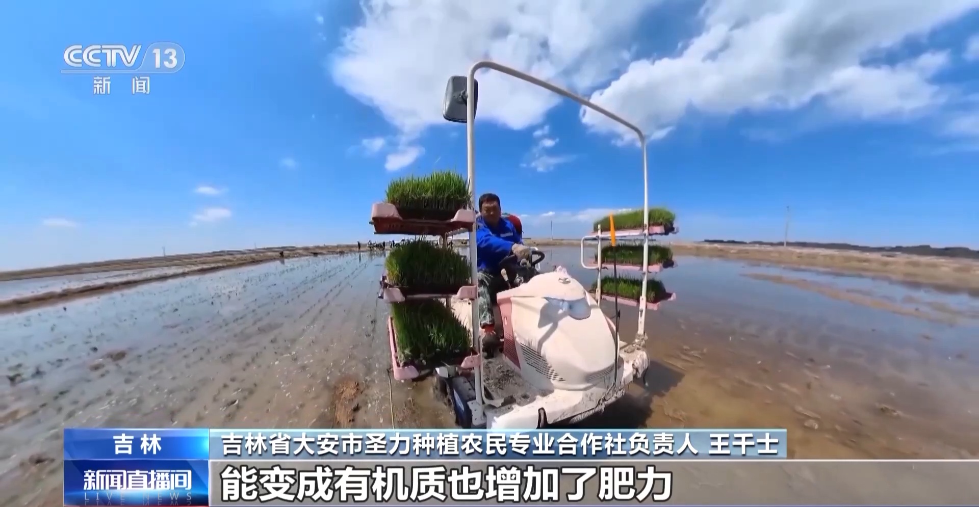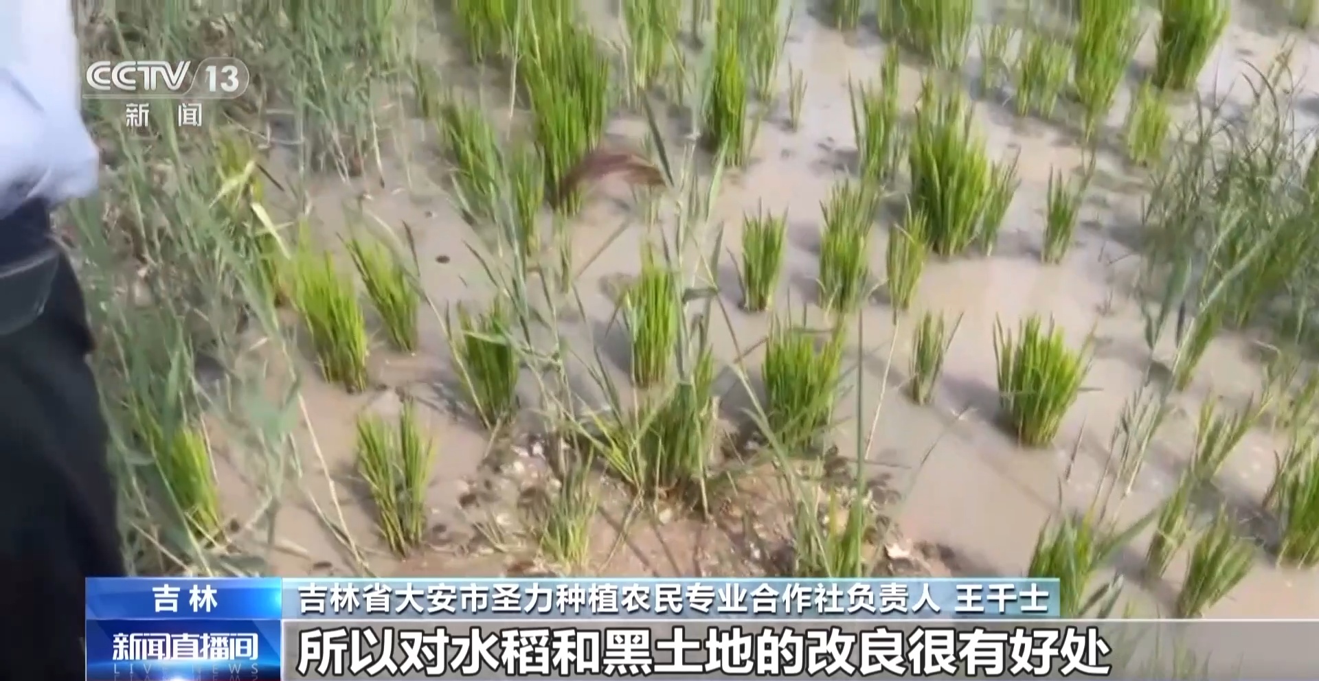 吉林省大安市圣力种植农民专业合作社负责人 王千士:因为咱们的稻田鸭、稻田蟹、稻田鱼,不单是除虫除草,另外它们的排泄物能变成有机质,增加了肥力,所以每年促进水稻增产每公顷500斤左右。