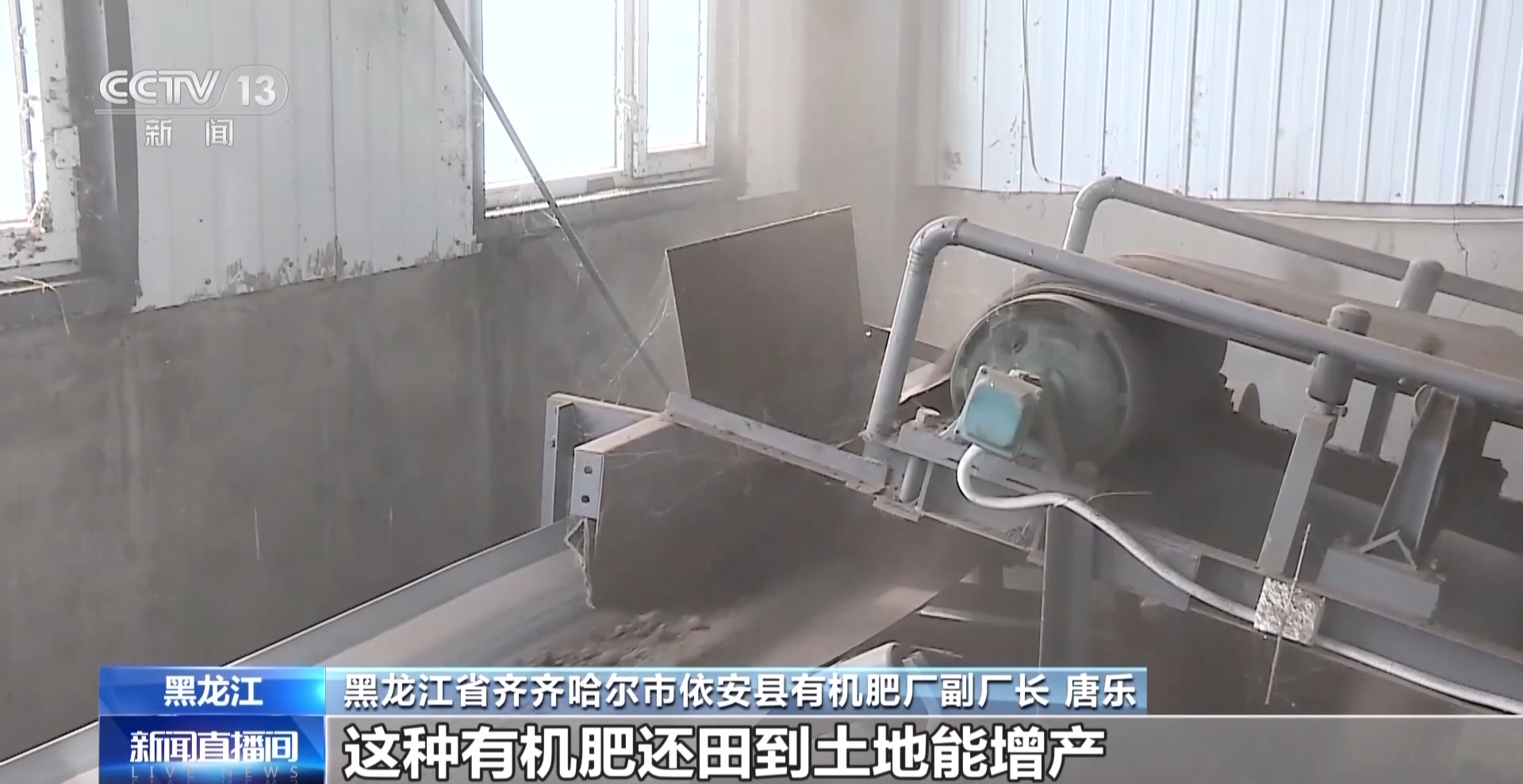 黑龙江省齐齐哈尔市依安县有机肥厂副厂长 唐乐:有机质含量会达到30%以上,这种有机肥还田到土地之内能增产,土地更肥沃。