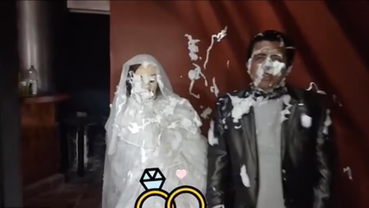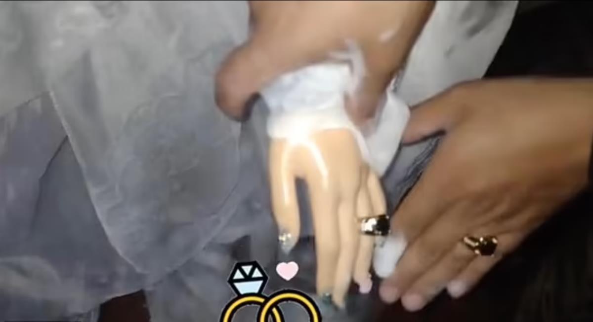 哥伦比亚男子为布娃娃戴上戒指(视频截图)