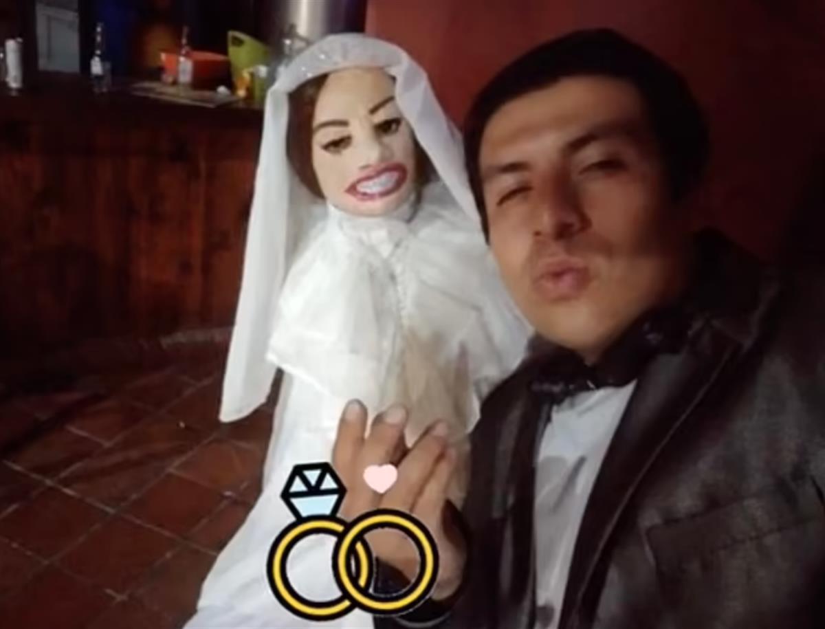 哥伦比亚男子与布娃娃结婚(视频截图)