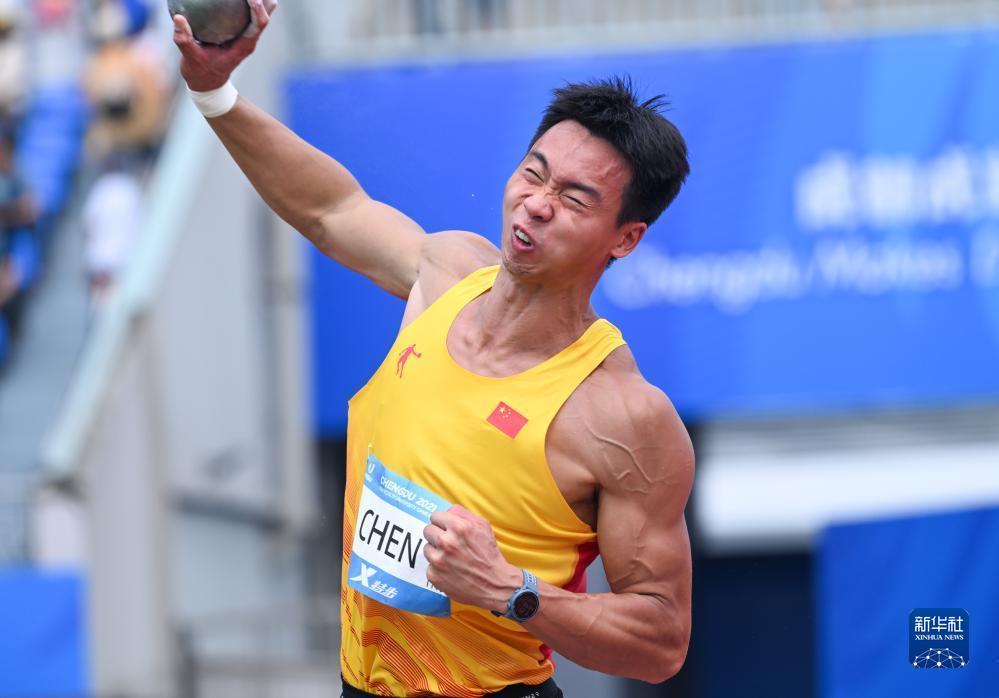 8月2日,中国选手陈业森在男子十项全能铅球比赛中。新华社记者 王曦 摄