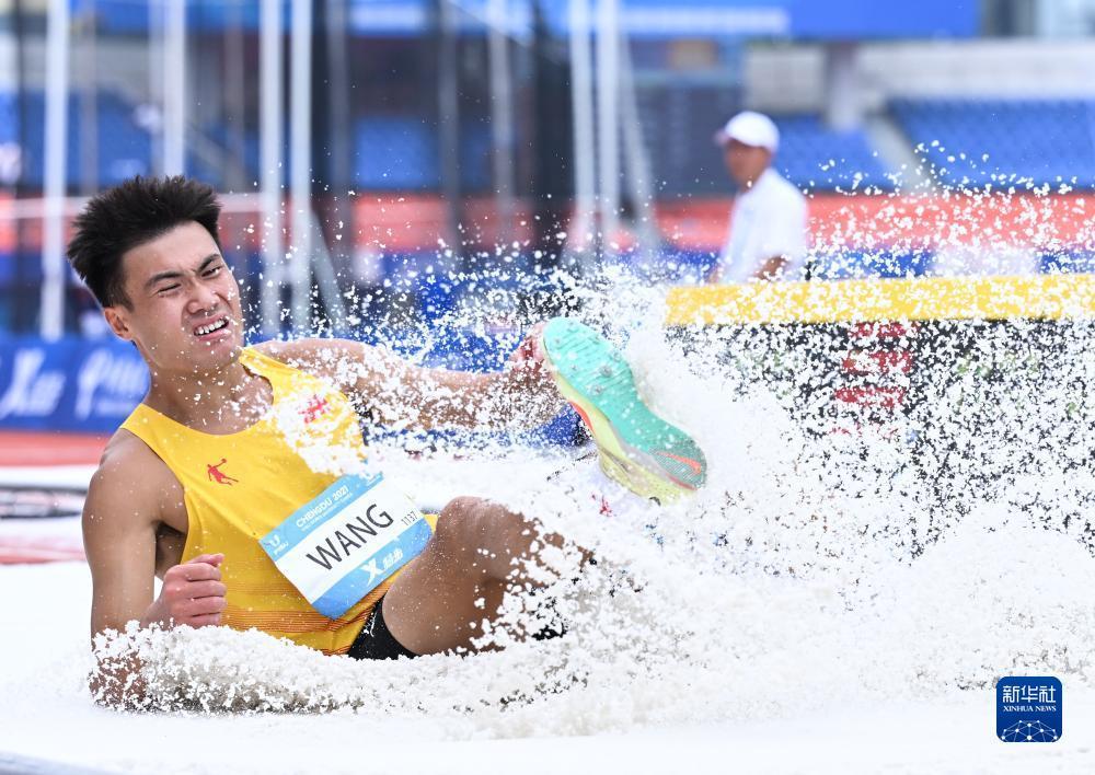 8月2日,中国选手王志鹏在男子十项全能跳远比赛中。新华社记者 王曦 摄
