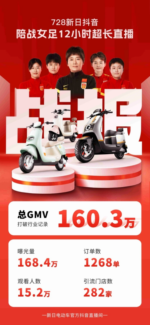 新日首次抖音直播专场成功背后,是自我证明的突破,亦是对新型经营模式的强有力探索,更是为8月在本地生活上线上千家门店打下了坚实的基础。新日,将以这份用心和走心,继续向前,引领行业发展。与此同时,作为女足姑娘们同频共振的“知己“,新日也将继续陪伴女足,给予女足姑娘们无条件的支持,陪伴她们一同面对挑战,迎接困难,并在各自领域继续完成自我超越,为女足精神助力,以最强的信心和坚定的决心共同向前迈进。