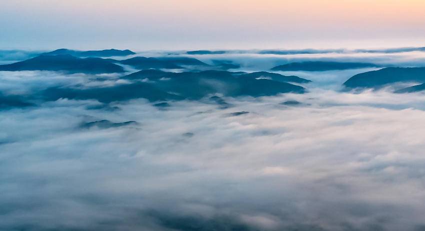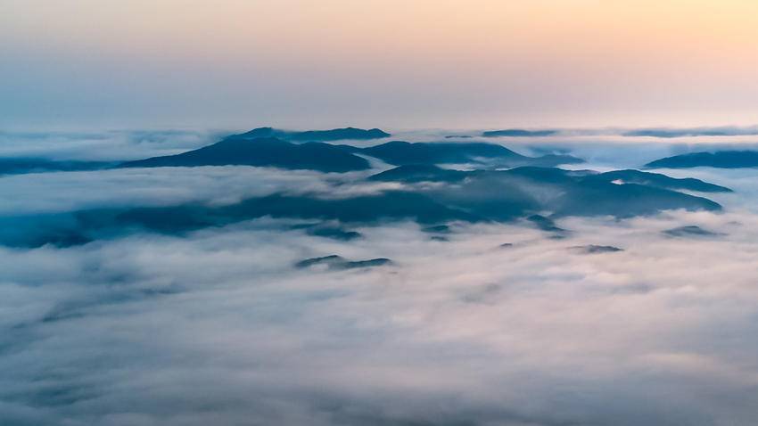 放眼望去,云海翻涌,仿若置身于天宫,云雾与青山相互缠绕、交集,使得绵延不绝的山峰更添几分动感。