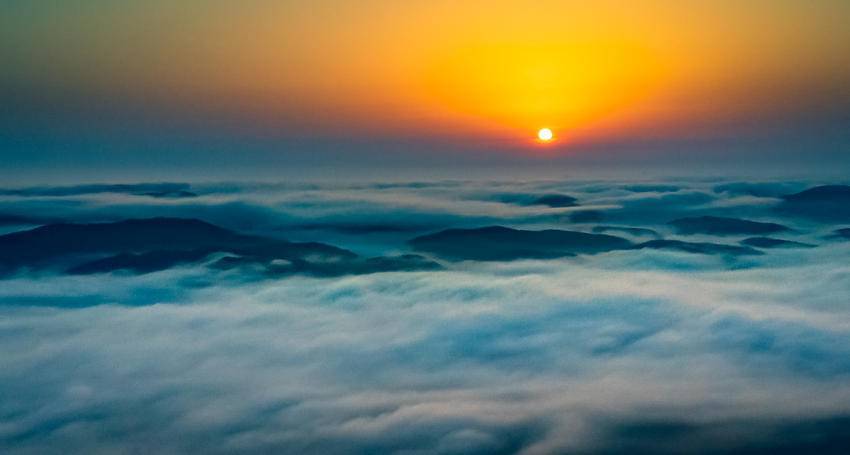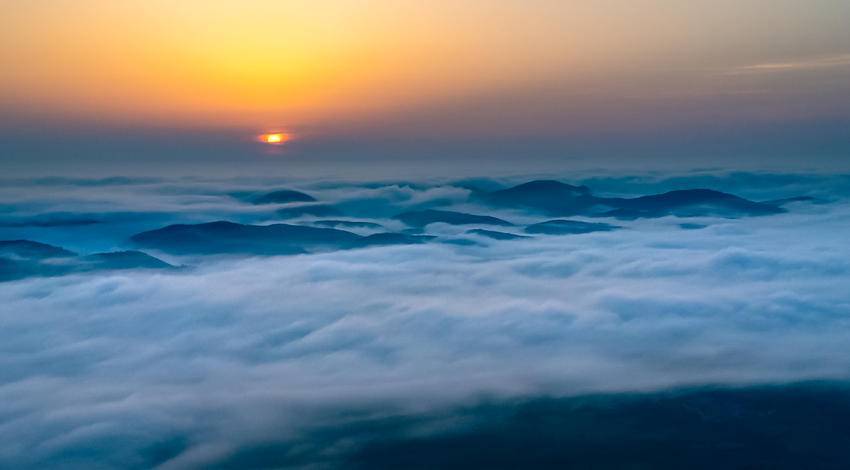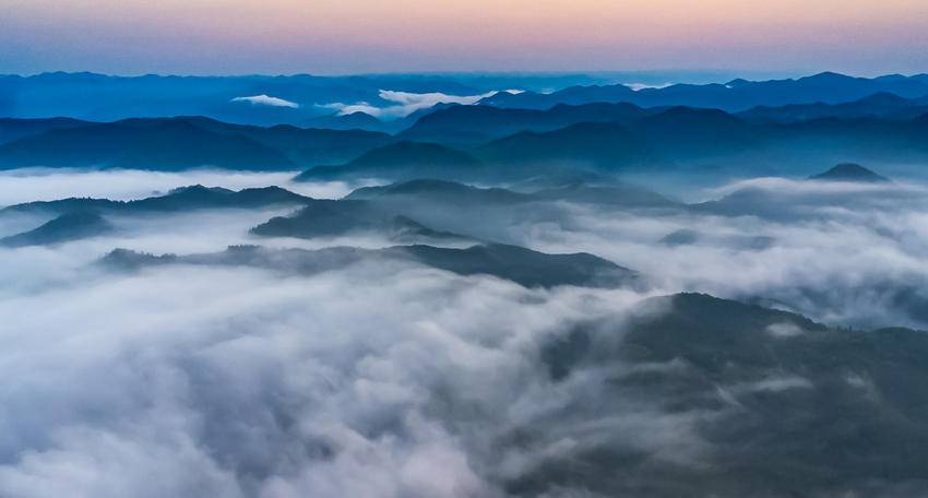 当太阳从云端的那边升起时,山间的云雾也开始逐渐变化,霞光染红云彩,云雾与霞光的交融,让整个山谷充满了诗意和想象,蔚为壮观,美不胜收。(湖北日报客户端通讯员 南融媒 李宗俊 杨晓帆 侯晓玲)