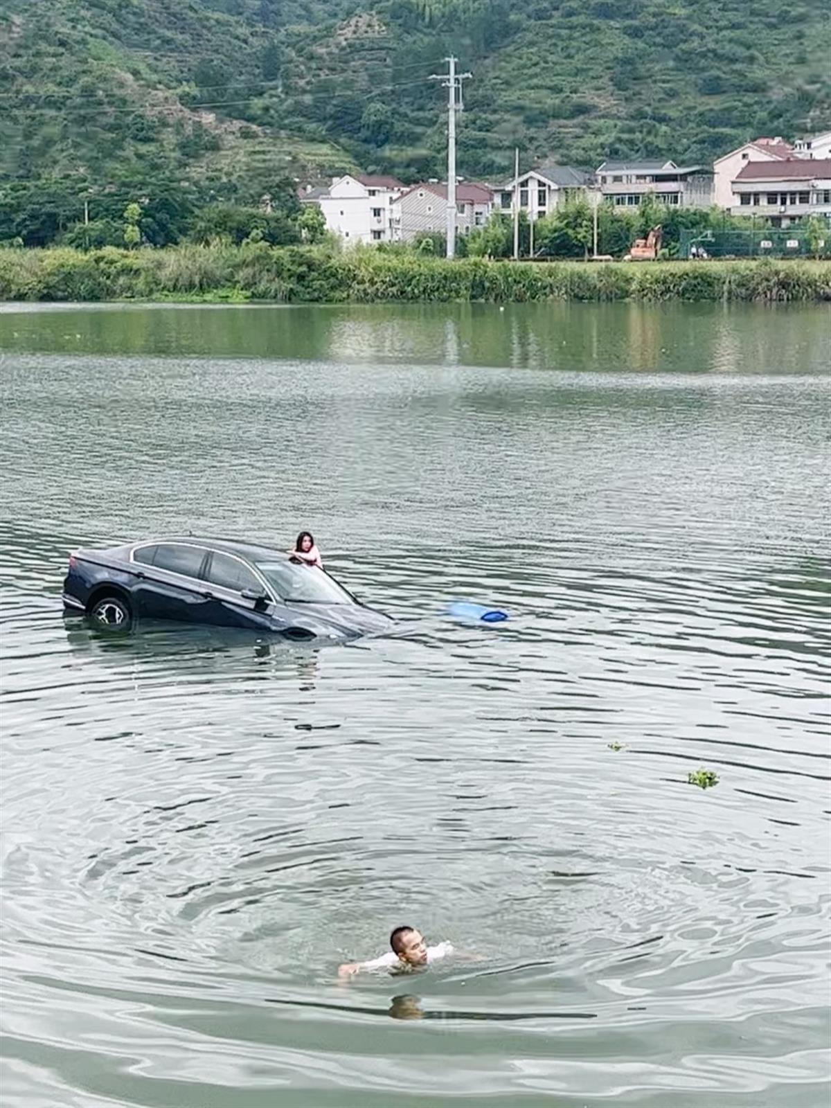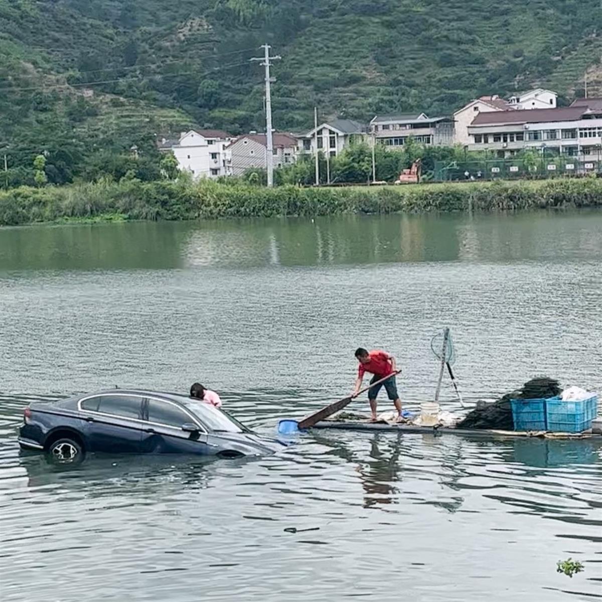 8月3日上午8时许,在浙江丽水莲都区湾岙村,一对男女驾驶一辆黑色轿车坠入二十多米深的南明湖中,女子被困车顶,男子会游泳,下水试图求救。正在附近的村支书王国华发现险情后,立即让驾着竹筏的村民王宗林赶过去,将人和车拉回岸边。