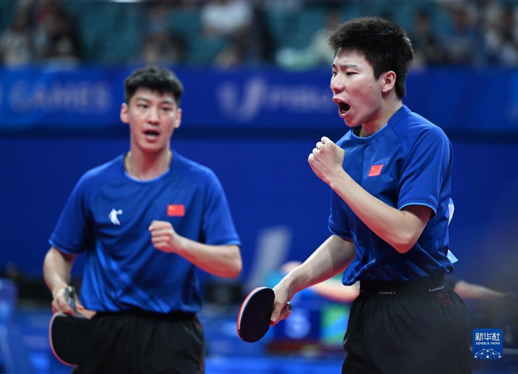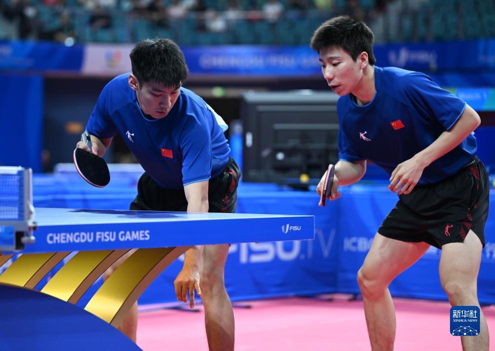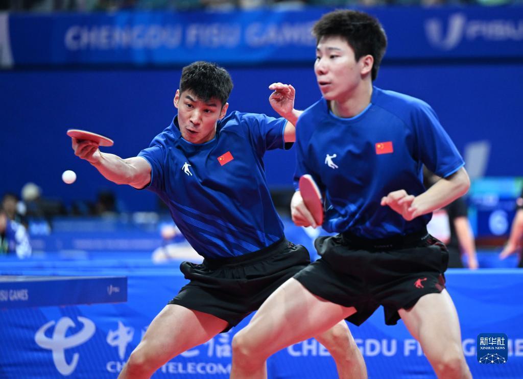 当日,在成都举行的第31届世界大学生夏季运动会乒乓球男子双打四分之一决赛中,中国组合徐瑛彬/薛飞以4比1战胜日本组合宫川昌大/田中佑汰,晋级半决赛。