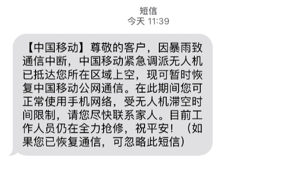 工业和信息化部搭建“空中信息通道” 保障受灾乡镇应急通信