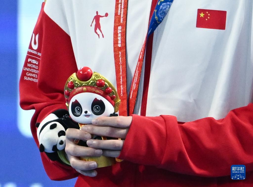 8月4日,李冰洁在颁奖仪式上手捧吉祥物“蓉宝”。新华社记者 张龙 摄