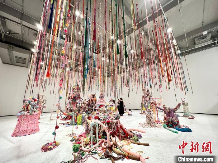 图为以“绳”为材质创作的作品《白日梦花园》。中新网记者钟旖 摄