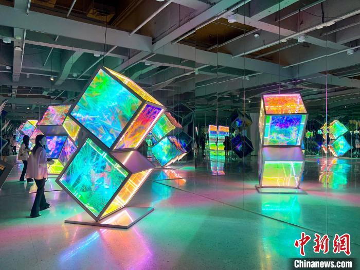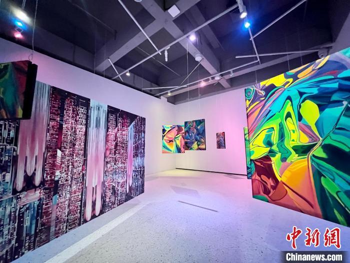 记者在现场看到,带有时尚、先锋等潮流文化的作品不仅充溢着“多巴胺”高饱和度色彩和元素,绘画、雕塑、刺绣等传统艺术还与全息影像、3D打印技术等相结合,丰富的视听氛围给人以互动感十足的沉浸式体验。