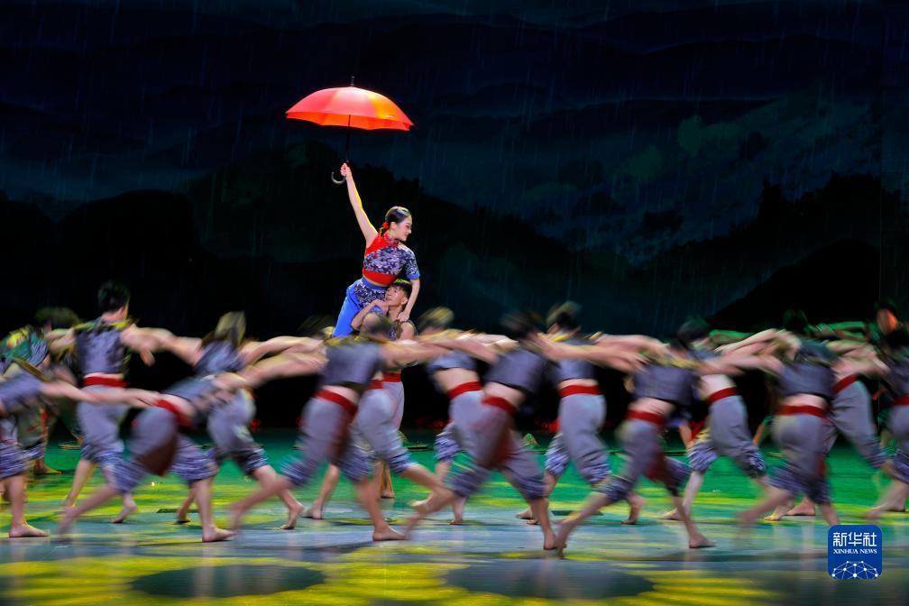 8月4日,来自四川文理学院的演员表演舞蹈《雨润巴山》。新华社记者 沈伯韩 摄