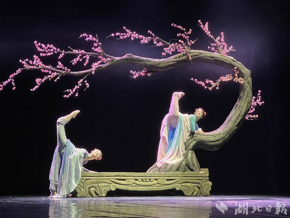 当晚的竞演,参评选手、武汉歌舞剧院青年舞蹈演员郑欣子率先登台亮相,她与同伴带来双人舞《年年雪里》。该作品取材于宋代女词人李清照的赏梅词,舞蹈别出心裁,以两位舞者饰演同一角色,立体而饱满地呈现了李清照早年欢乐,中年悲戚,晚年沦落的人生际遇。作品将忧国爱民的家国情怀寄于穿越时空的对话当中,通过演员极具感染力的深情演绎,将诗词意境与舞蹈语汇层层递进,不禁令人潸然泪下。据了解,该作品在2023年4月入围了中国舞蹈艺术的最高荣誉——中国舞蹈“荷花奖”。表演中,郑欣子曼妙的舞姿赢得台下观众和评委的热烈掌声,作为武汉歌舞剧院的骨干,郑欣子曾参演舞剧《江湖》获第五届湖北舞蹈“金凤奖”(职业舞蹈)特别奖;《汉正街的娘子军》荣获第十届全国舞蹈比赛创作二等奖;荣获第二届中南六省(区)“十佳青年优秀舞者”;曾参演第七届世界军人运动会开幕式第一篇章《文明之光》的表演。此次参赛让郑欣子格外兴奋,“很感谢院里推选我参加江花奖的评比,今天能在舞台上呈现这个节目,特别不容易,我们经历了漫长的排练、打磨。为了能演艺好,我们很早开始准备,最近顶着酷暑在剧场排练,很感谢团队的每位小伙伴。”